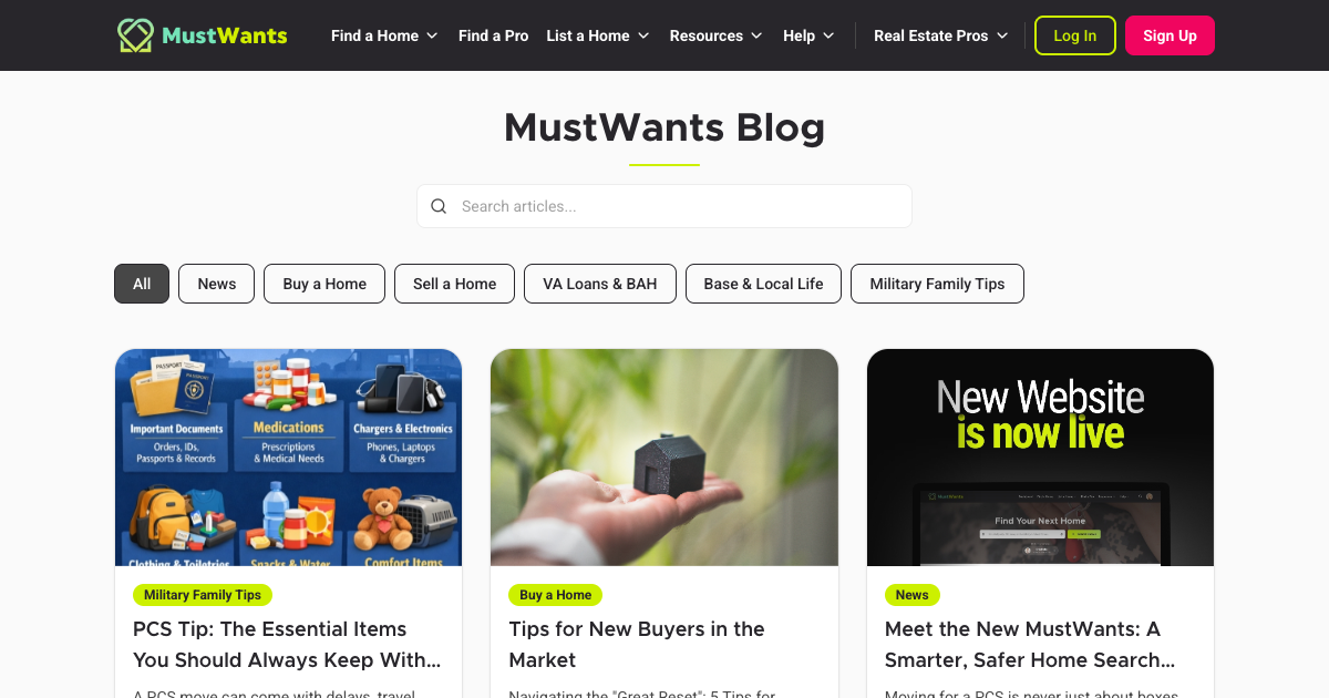 Read guides, tips, and insights on PCS moves, VA loans, military home buying, renting, and relocation planning.