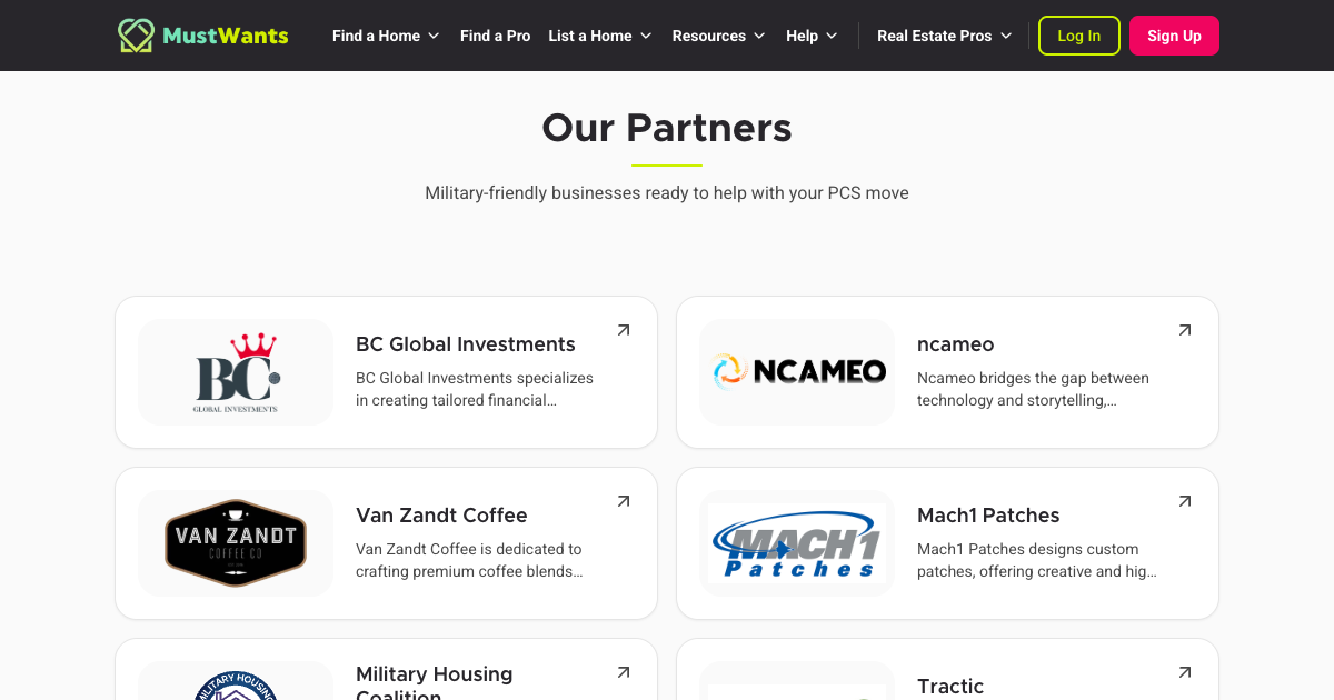 Military-friendly businesses ready to help with your PCS move. Find trusted partners and affiliates on MustWants.